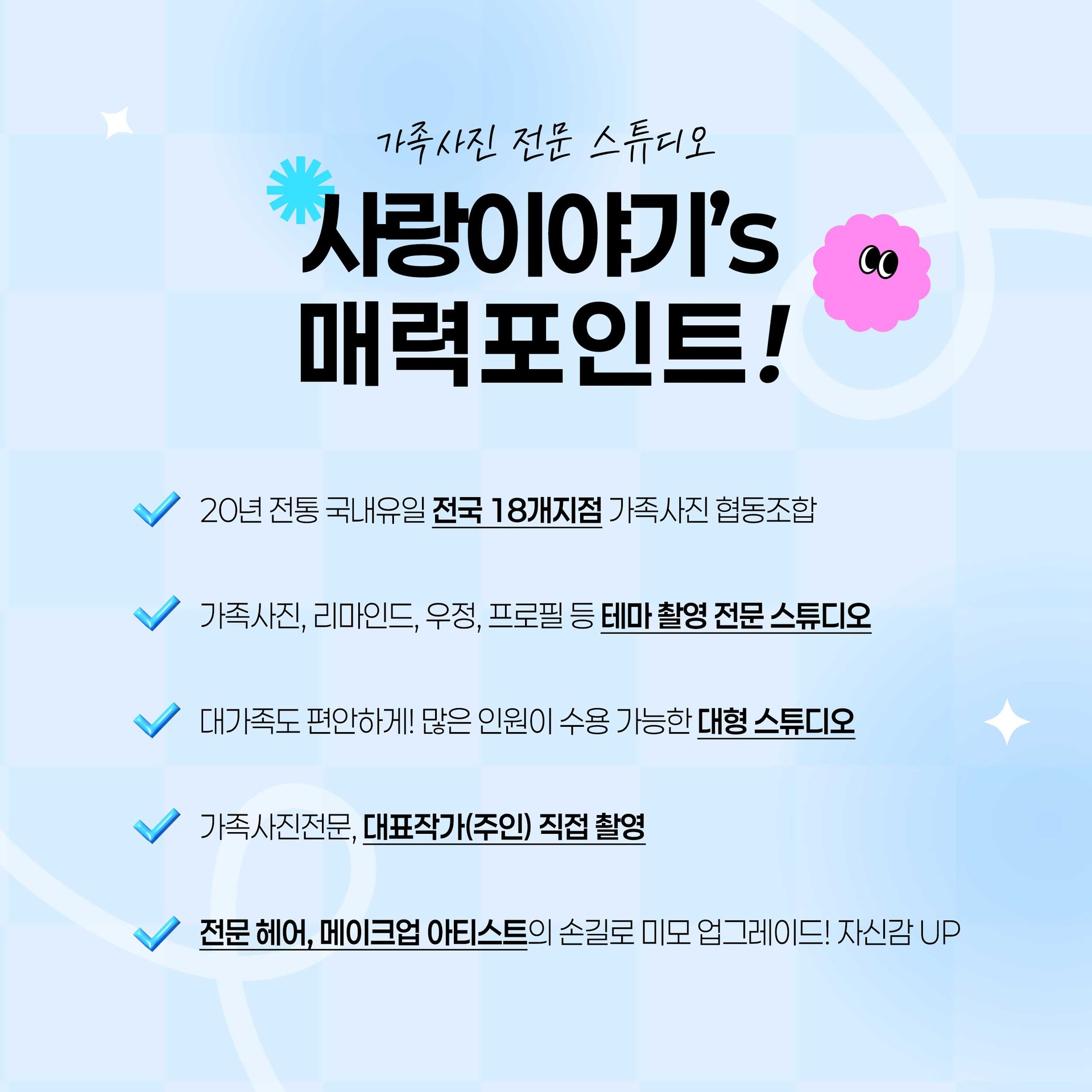 전국 17개지점 가족사진 전문 스튜디오